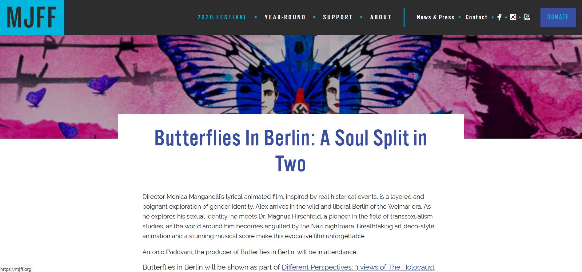 The film has been invitated by the Italian Embassy in Berlin for the HOLOCAUST REMEMBRANCE DAY 2020, for a special event and debate to commemorate the victims of the Shoa, together the international journalist Tonia Mastrobuoni (Repubblica).